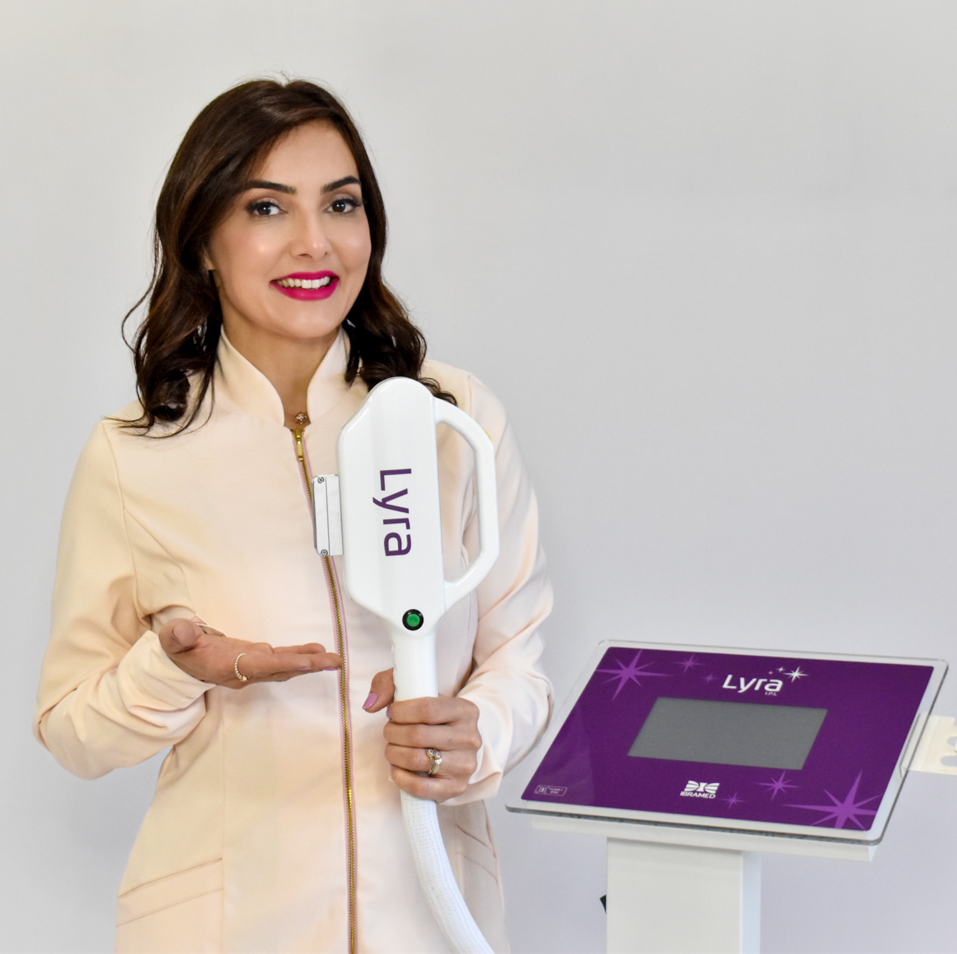 O Lyra é um equipamento microcontrolado por luz intensa pulsada para utilização em tratamentos estéticos. Ele possibilita comutação de 3 filtros de corte seletivos com comprimentos de onda de 480nm, 530nm e 640nm, os quais permitem a escolha do devido espectro de radiação luminosa para cada tratamento.