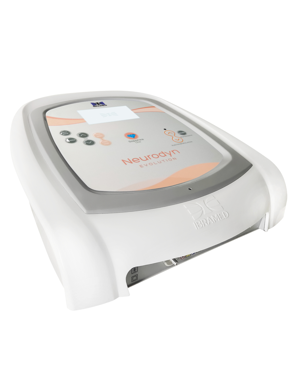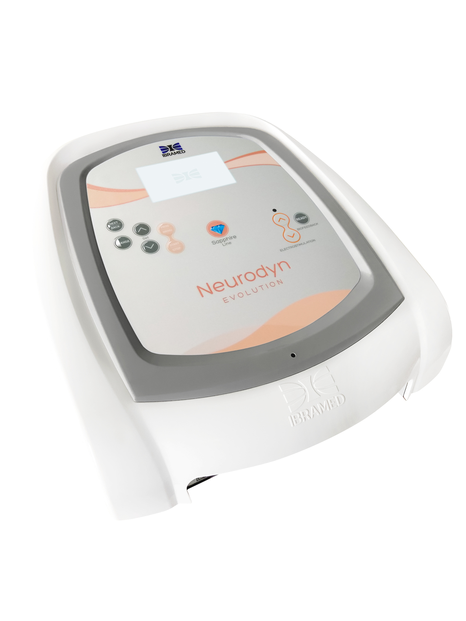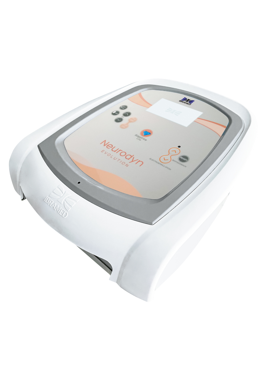 O Neurodyn Evolution Safira da Ibramed, é um aparelho de eletroestimulação com as correntes Fes ou por terapia de Biofeedback. Seu uso é indispensável para tratamentos estéticos e fisioterápicos, além de auxiliar na reabilitação das disfunções uroginecológicas e coloproctológicas.