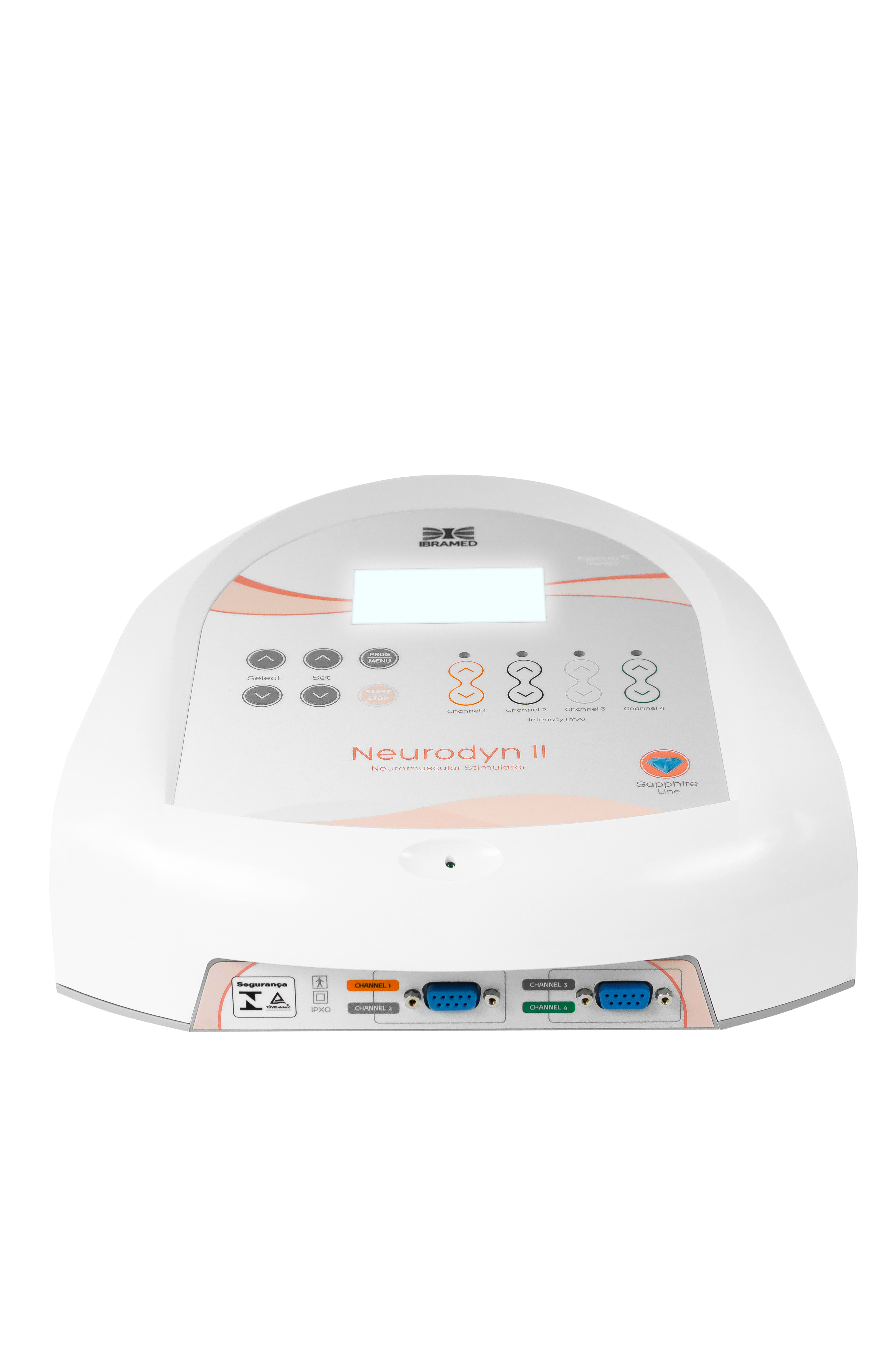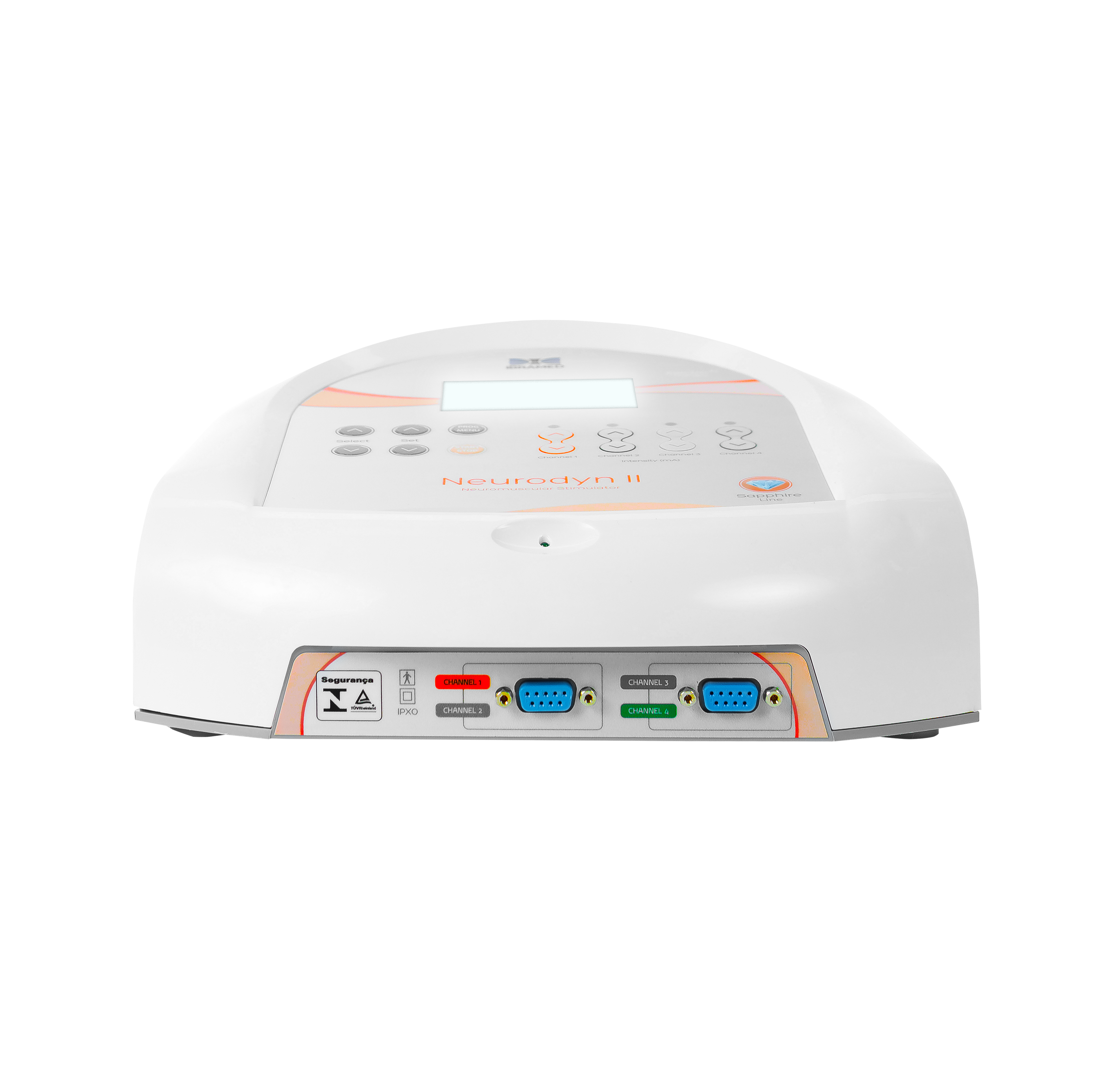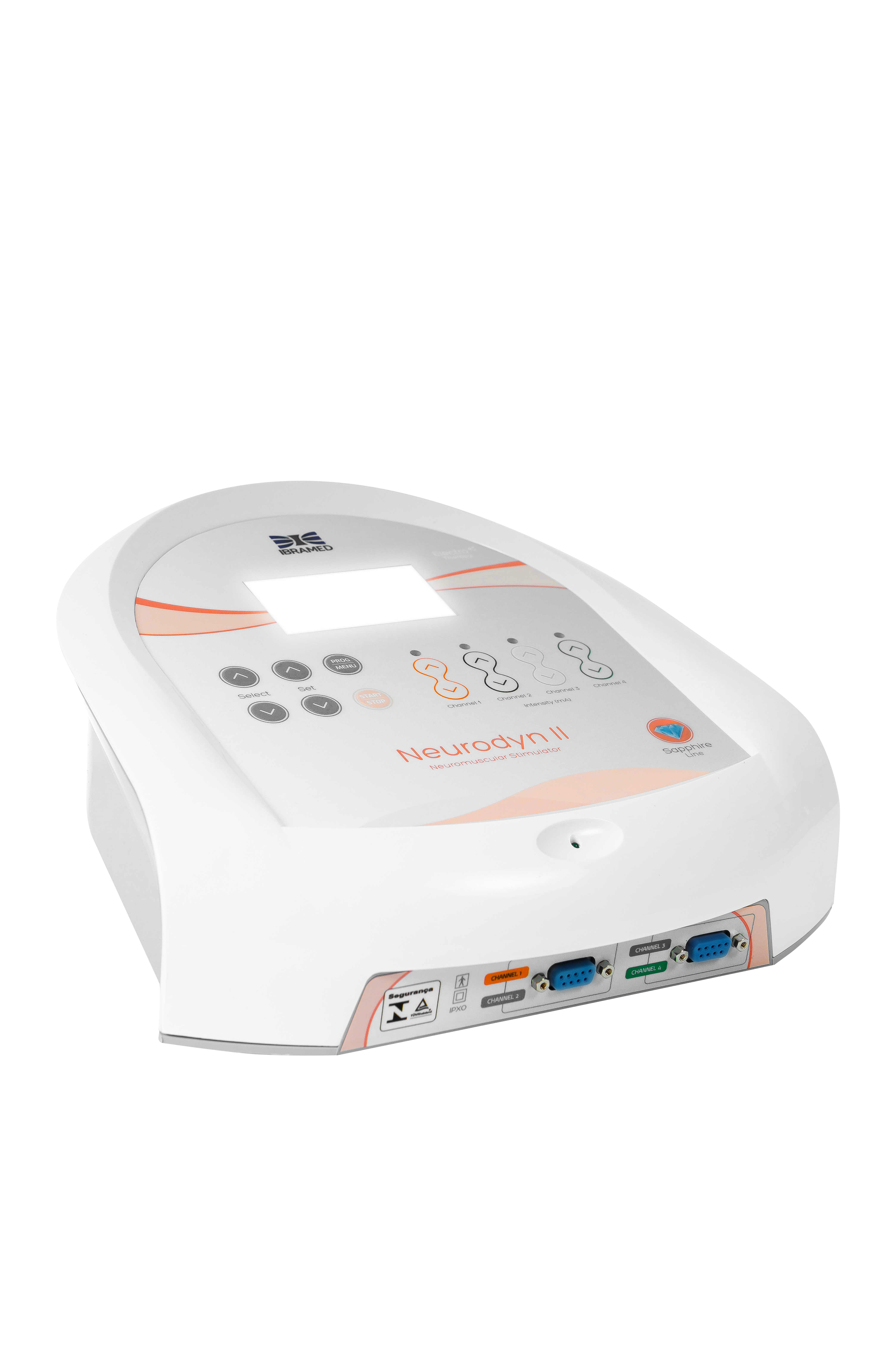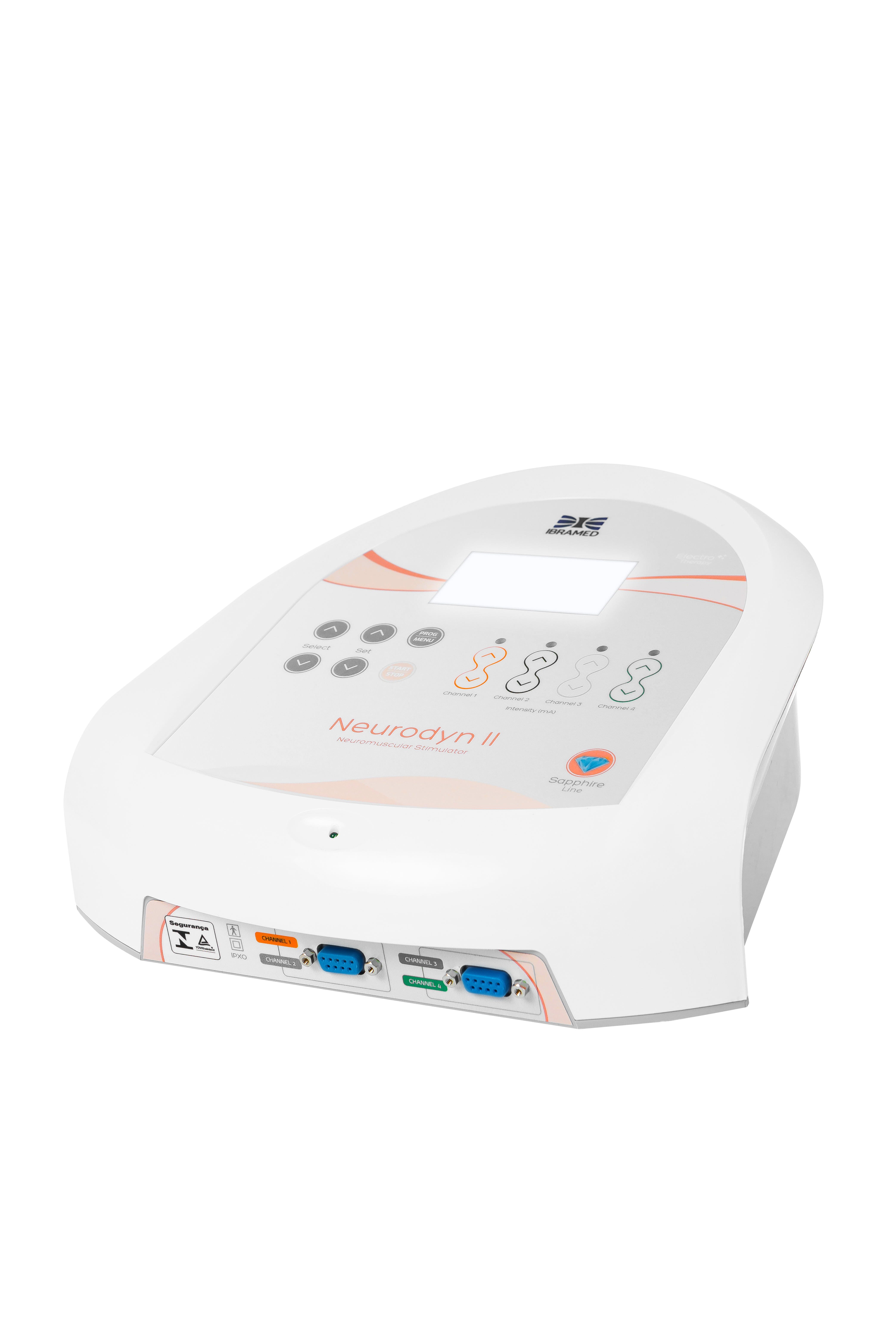 O Neurodyn II é um estimulador neuromuscular transcutâneo destinado aos tratamentos de reabilitação física. Ele é composto pelas correntes: TENS (estimulação elétrica transcutânea – Transcutaneous Electrical Nerve Stimulation), FES (estimulação elétrica funcional – Functional Electrical Stimulation) e russa. O Neurodyn II possui 32 protocolos de tratamentos pré-programados e 20 particulares, display LCD Blue Light (que facilita a identificação dos protocolos e programações), 4 canais de saída com controles independentes de intensidade através de teclas soft touch e bolsa para transporte. O equipamento deve ser usado somente sob prescrição e supervisão de um profissional licenciado.