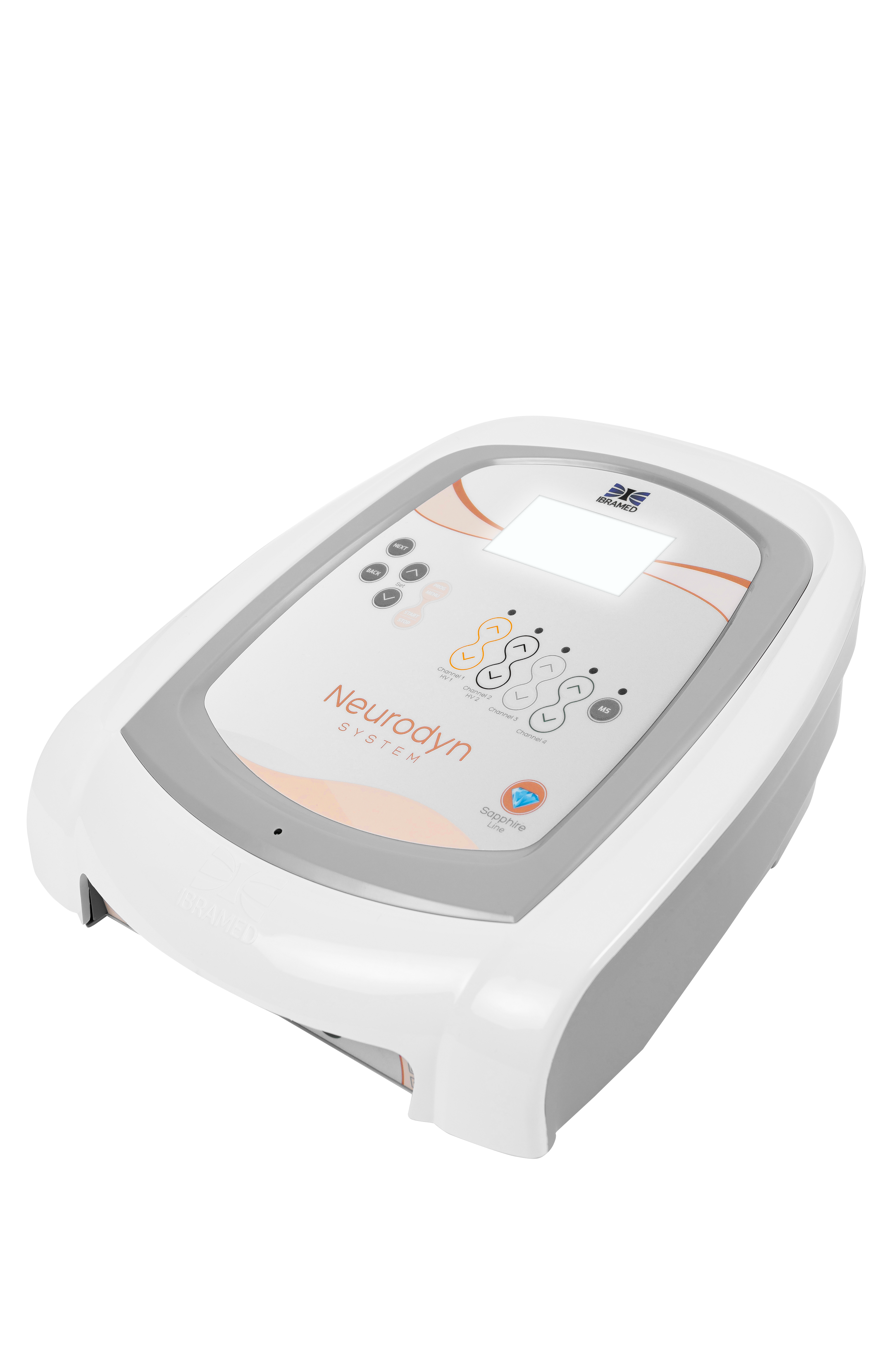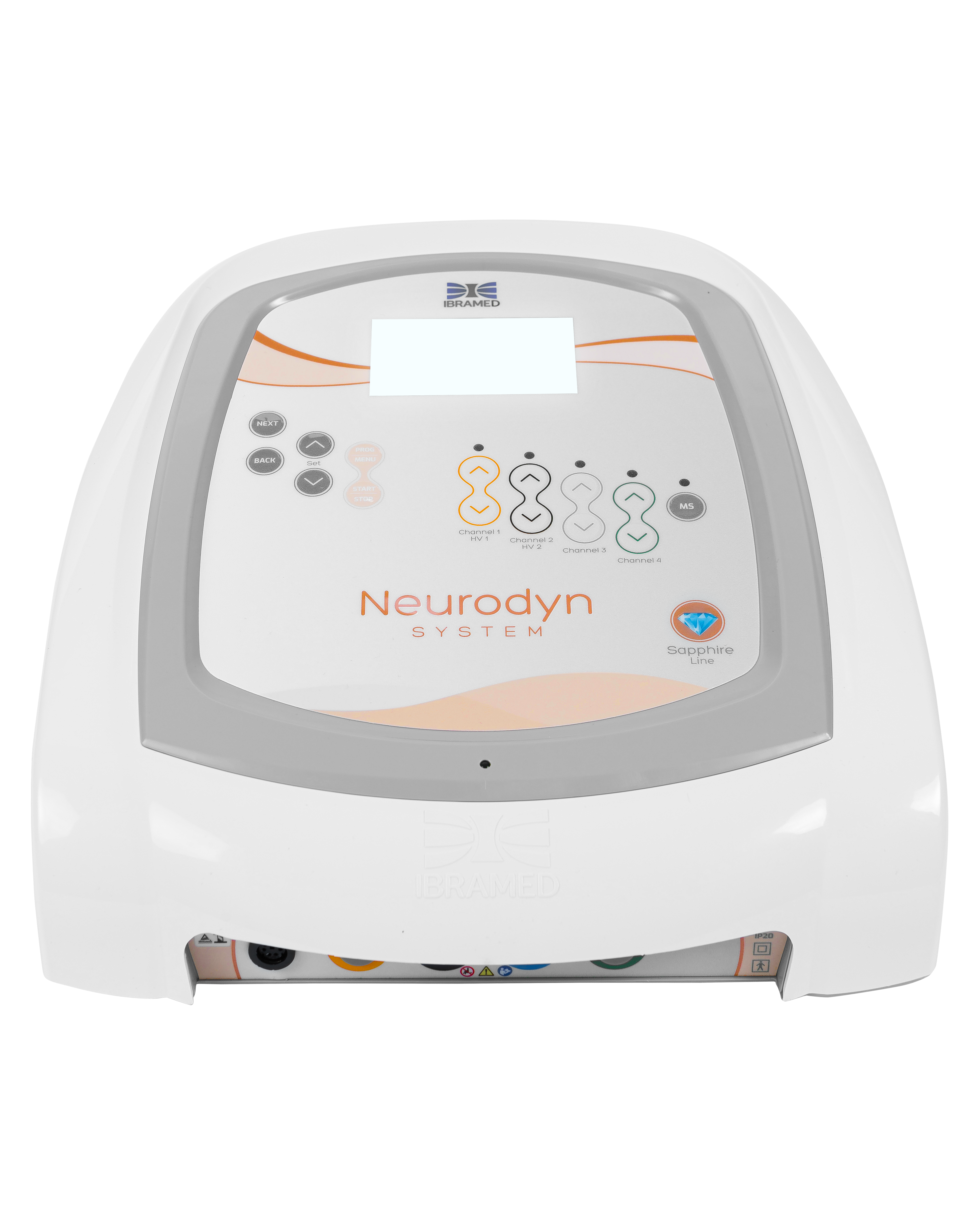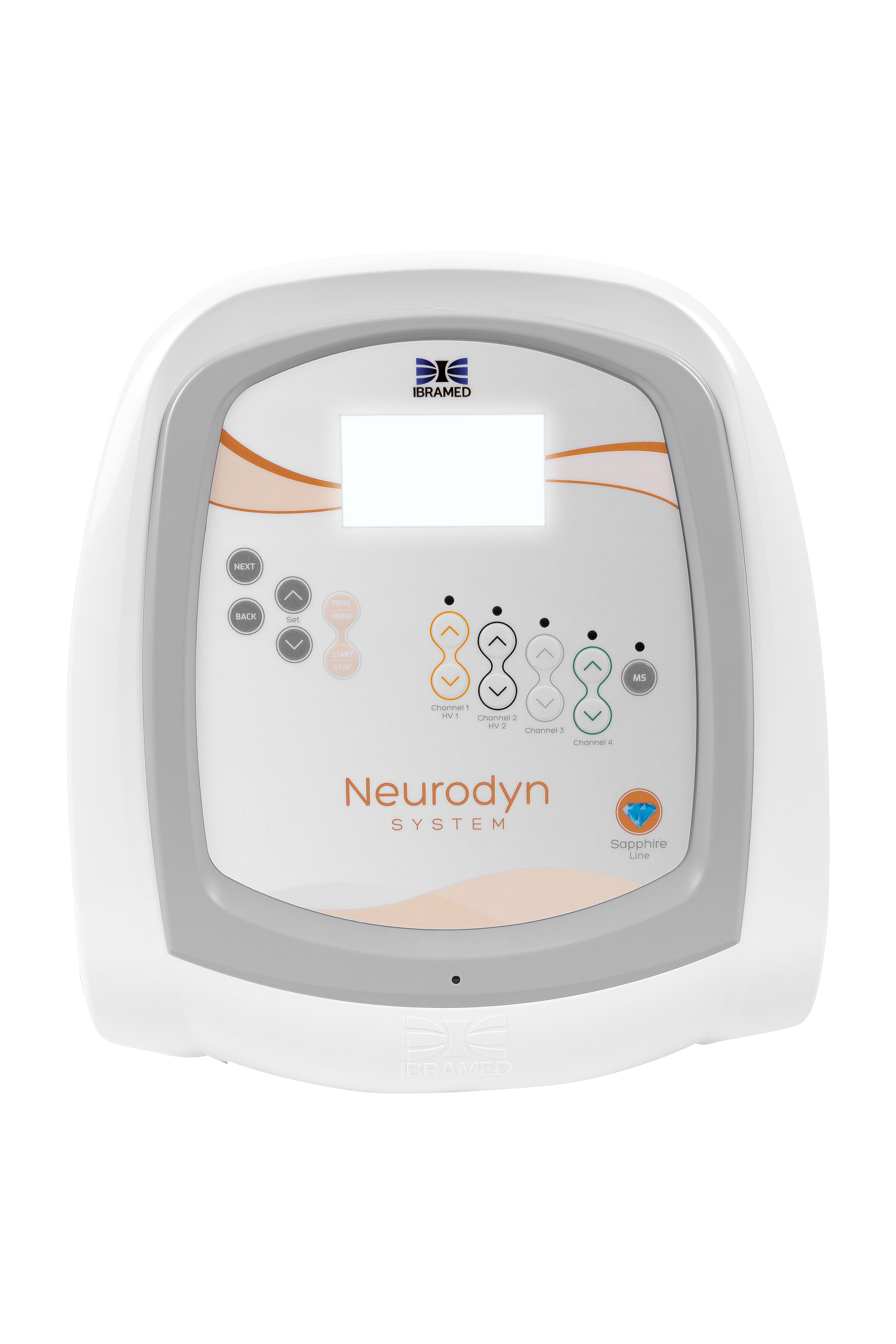 O Neurodyn System, é um estimulador neuromuscular transcutâneo completo, com 4 canais para correntes alternadas com controles independentes e 9 correntes: Aussie, Russa, Tens, FES, Interferencial Tetrapolar e Bipolar. Além de 2 canais independentes para os tratamentos com Microcorrente, Corrente Polarizada e Corrente Pulsada de Alta Voltagem (High Volt). O equipamento possui 54 protocolos de tratamento pré-programados e 20 opções para salvar seus protocolos particulares, display LCD blue light, teclas Soft Touch e disposição dos parâmetros de forma diferenciada. Este aparelho é ideal para fisioterapia e pode ser utilizado na estética. Compacto, permite fácil transporte e atendimento home care.